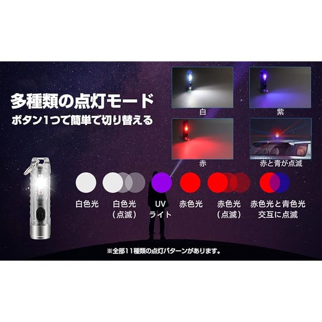 商品名:SUCCUL KOZATO 懐中電灯 ハンディライト ミニサイズ 超小型 キーリング懐中電灯 led 強力 USB充電式 防水 白赤UV青4つ色 フラッシュライト 明るい 赤色光 UVライト軍用 マグネチック 軽量 1.5m耐衝撃 防災 停電対策 緊急用 キャンプ 登山 夜釣り