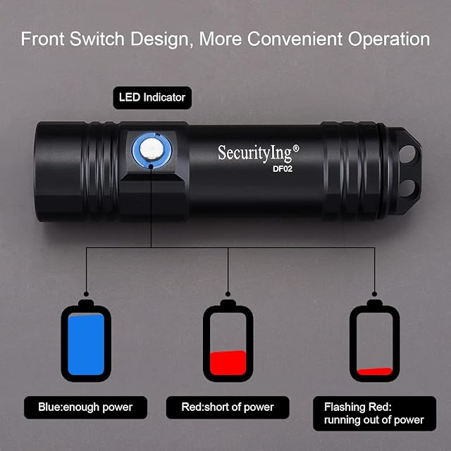SecurityIng ダイビングライト 800ルーメン 超高輝度 LED 水中ライト 80M防水 電池式 IPX-8防水 ダイバー必須 3つ調光モード スキューバダイビング用(電池は別売り)