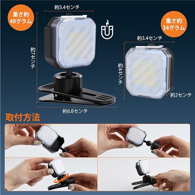 商品名:Futwod ランニングライト クリップライト マグネット式 8色 LED アウトドア 散歩ライト ウォーキング 犬 散歩 ジョギング ライト 補助灯 夜釣り キャンプ ハイキング キャップ 夜勤 自転車 汎用 照明ライト 角度調整可能