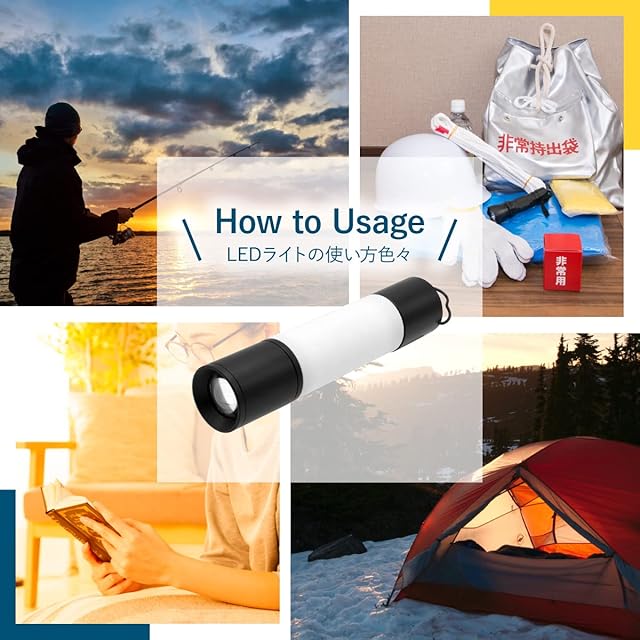 【充電式・モバイルバッテリー】2500mAh充電式のリチウムイオンバッテリーが内臓しており、ライト本体はスマホや端末のモバイルバッテリーとしてご活用いただけます。キャンプや登山などのアウトドアや、緊急時の防災グッズとして一家に一台常備しておきたいアイテムです。※端末と接続する前に電圧が適合しているか必ずご確認をお願い致します。【ライト本体の充電方法】①シリコン製のフタを外し、付属の充電コードのUSB-Cプラグを本体のUSBポートへしっかりと差し込んでください。②反対側のUSBプラグをUSBタップやパソコン等のUSBポートへしっかりと差し込んでください。※充電中はインジケーターランプが青色に点滅し、充電が完了するとインジケーターランプが点灯に変わります。