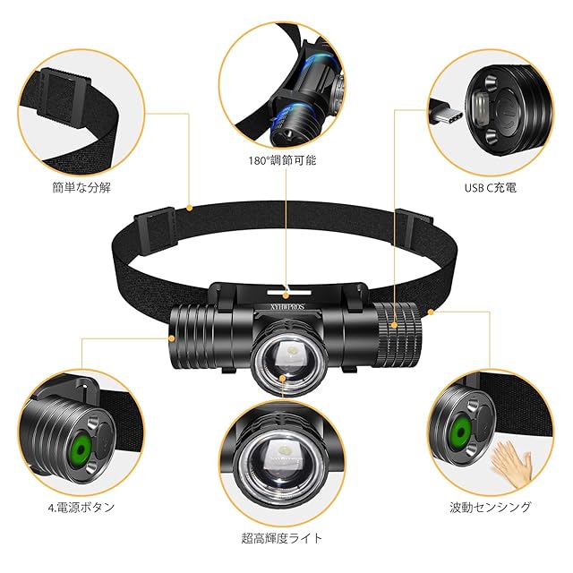 商品名:ヘッドライト 充電式 USB Type-C LED ヘッドランプ 800ルーメン 人感センサー 高 モード レベル 最適 夜釣り 登山 キャンプ 散歩 作業 アウトドア 災害 停電用