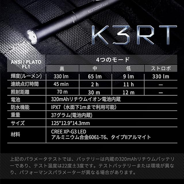 商品名:NEXTORCH K3RT 懐中電灯 小型 led ペンライト 330ルーメン 高輝度 充電式 軽量 ストロボ 4段階調光 自己防御 窓ガラスを割れ IPX7防水 耐衝撃1m メモリー機能 クリップ付き ワークライト 作業灯 アウトドア 夜散歩 防災 キャンプ 停電 緊急用