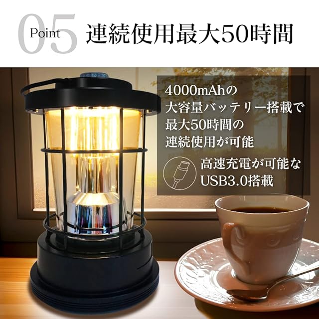 【無段階調光&防滴仕様】ダイヤル操作で、シーンに合わせて適切な色温度と快適な光度を自由に演出、クールから暖かい雰囲気を作り出せるLEDランタンです。ランタンは防水性能IP65でいかなる角度からの水しぶきも保護!耐衝撃性・耐熱性・耐磨耗性があって悪天候に耐えうることができます。