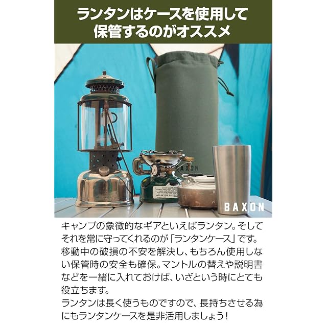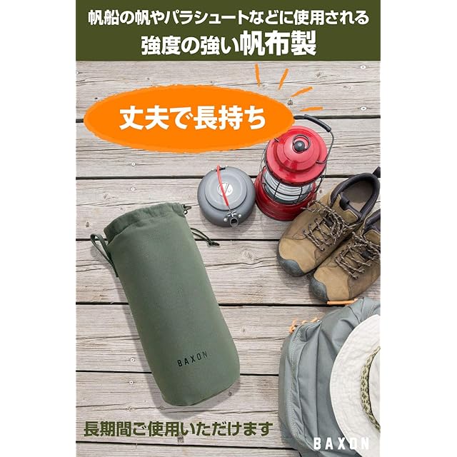 【 丈夫で水を通しづらい、さらに味が出る帆布製 】 「BAXON」製のランタンケースは、帆布生地を採用しております。大きな特徴として、「強度」があります。これを生かして帆船の帆、テント、パラシュート、靴など強度の必要なものに使用されてきた素材となっております。そのため、本商品のランタンケースは丈夫で長持ちのため長期間ご使用いただけます。 【 30日間のメーカー付き! 】 本製品には、「BAXON」正規取扱店からの購入に限り購入日から30日間の返金をさせて頂いております。日本人スタッフが1つ1つ丁寧に検品しておりますが、輸送中に破損や不良が出る場合がございます。その場合、迅速にご対応いたしますので、カスタマーサポートからご注文番号を添えてご連絡くださいませ。また、製品についてご不明な点や問題などが御座いましたら、お気軽にカスタマーサポートからお問い合わせください。