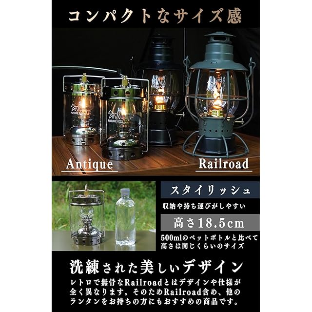 FUTUREFOX ランタン オイルランタン Antique パラフィンオイル キャンドルランタン風 タンク150ml 48時間連続使用 ポンピング不要 (ガンメタ)