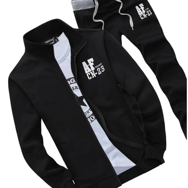 [アスペルシオ] カッコいい あったか スエット セットアップ フードなし ストリート ファッションジャージ メンズ スウェット上下 長袖 長ズボン ベーシック ホームウェア 2点セット 部屋着 快適 暖かい ルームウェア 上下セット スウェット ジャージランニング ラフ ダンス アウトドア スポーツカジュアル リラックス 大人 ウェア フルジップ 上下 家着 カラージャージ (S) ブラック