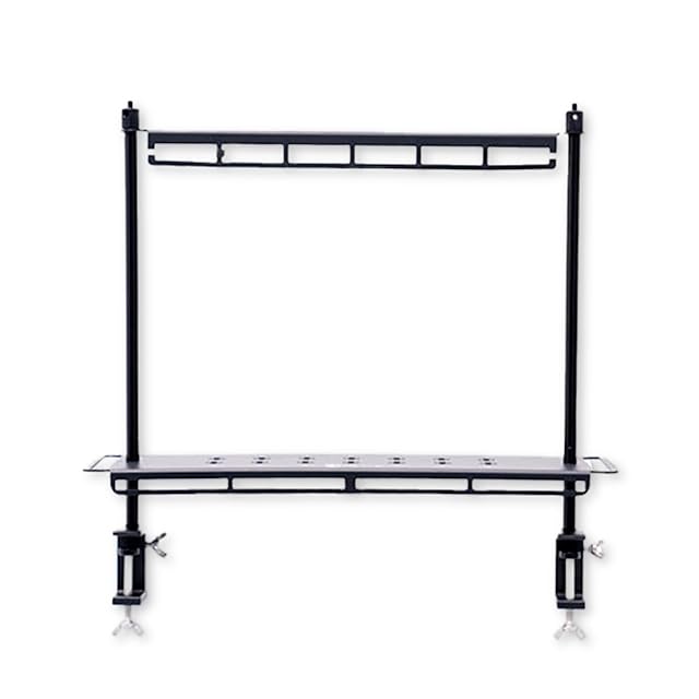 2Way仕様 : クランプを使用してテーブルに固定したり、ペグを使用して地面に刺して使うこともでき、キャンプサイト設営に非常に便利です。