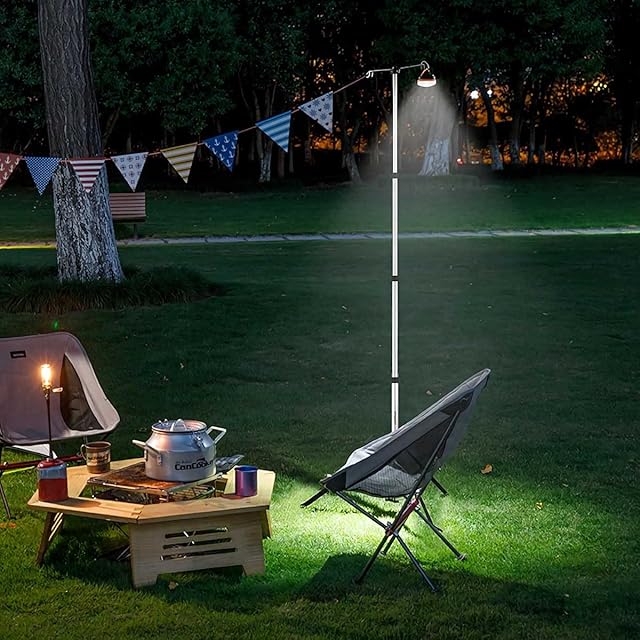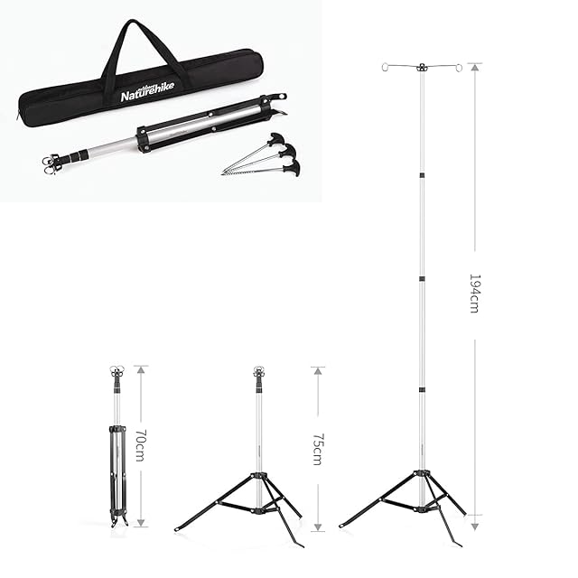 【アウトドアに大活躍】最大高さ194cm程度まで高さを上げることができるため、より高い位置からサイト全体を明るく照らすことができます。また余裕のある耐荷重設計により大小種類を問わずほぼすべてのランタンを吊り下げることが可能です。