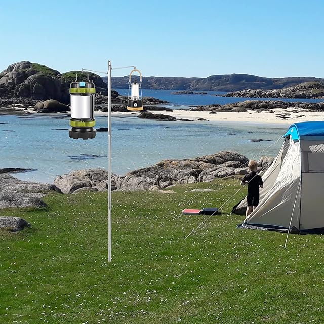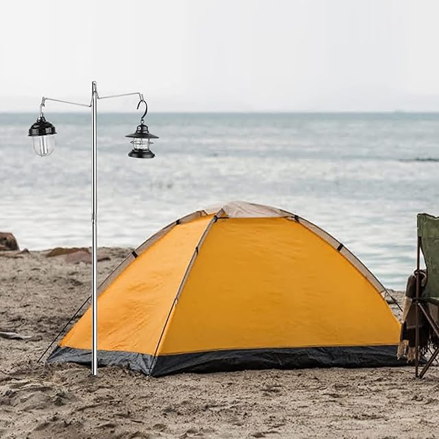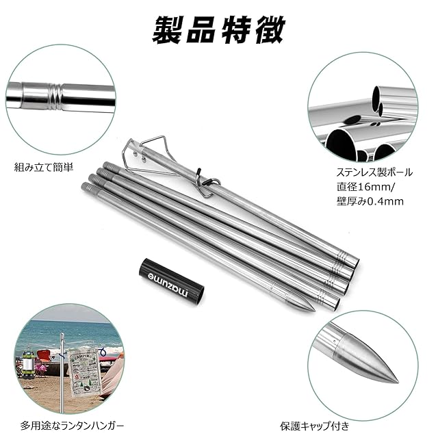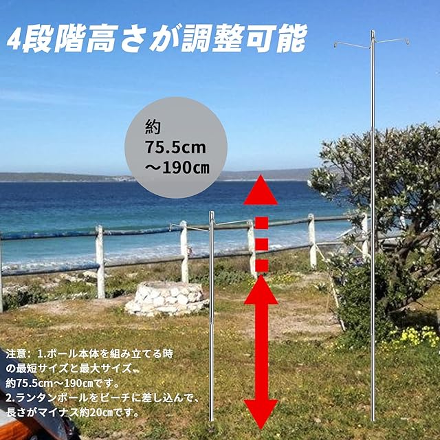 商品名:KOMCLUB ランタンスタンド ランタンポール 卓上 ステンレス製 直径16mm 全長190cm 4段階高さ調整 ライトスタンド ランタンハンガー付き 打ち込み式 軽量 コンパクト 携帯便利 キャンプ設営用
