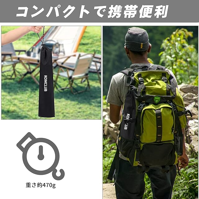 【コンパクト&携帯便利】セットの重量は約470gになります。ポールを折りたたんだ後の長さはわずか41.5cmです。収納袋付き、ランタンスタンドがコンパクトに収納できます。ハイキングの途中にバッグの横に差して、軽量で携帯便利です。