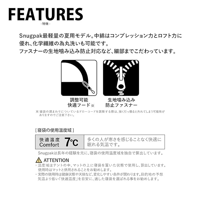 仕様/快適外気温度 : 7℃、下限外気温度 : 2℃、圧縮用バッグ付き