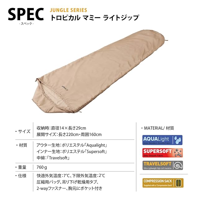 商品名:Snugpak(スナグパック) 寝袋 シュラフ トロピカル マミー ライトハンド デザートタン 夏仕様 丸洗い可能 [快適使用温度7度] (日本正規品)