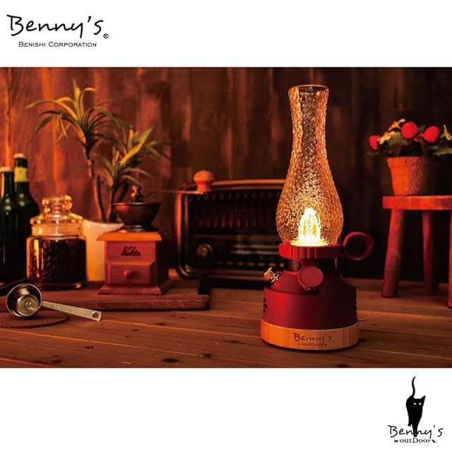 Benny's LED ランタン 電球色 充電出来る ZKC-001R おしゃれ レトロ クラシック デザイン レッド キャンプ ガーデンパーティ BBQ ベッドサイド テーブル 書斎 ランプ ゆらぎ こころ安らぐ くつろぎ の時間を