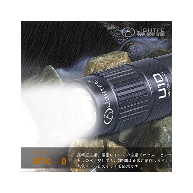 商品名:LIGHTFE U10 USB充電式ミニポータブル懐中電灯 LEDライト ハンドライト 完全防水 耐摩耗 多用途ランプ 強力光