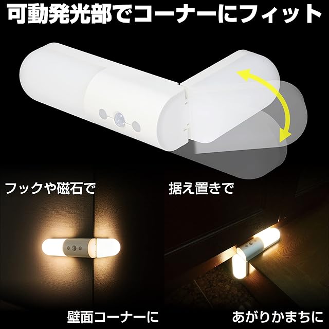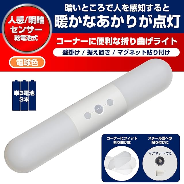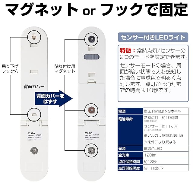 エルパ (ELPA) LEDセンサー付ライト (電球色/電池式) 人感センサー/曲がり角/マグネット/ネジ止め可能 PM-L262(L)
