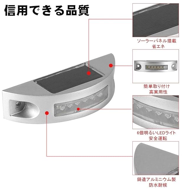 [6LED高輝度ライト] 明るい6つのLED搭載で低消費電力ながら高照度。通路やドライブウェイをしっかり照らし、眩しくない設計で安全な誘導を実現。点滅モード付きで視線を引きつけ、夜間の歩行者・運転者の安全性を向上させます。