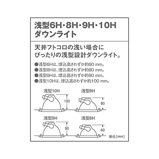 ●LED(電球色タイプ)<br>●色温度:2700K<br>●光源寿命40000時間(光束維持率70%)<br>●埋込穴径:φ100mm<br>●埋込高:80mm<br>●器具光束:450lm<br>●電圧:100V<br>●消費電力:5.6W<br>●消費効率:80.3lm/W<br>●【アルミ枠】ホワイトつや消し<br>●Ra83<br>●60形電球1灯器具相当