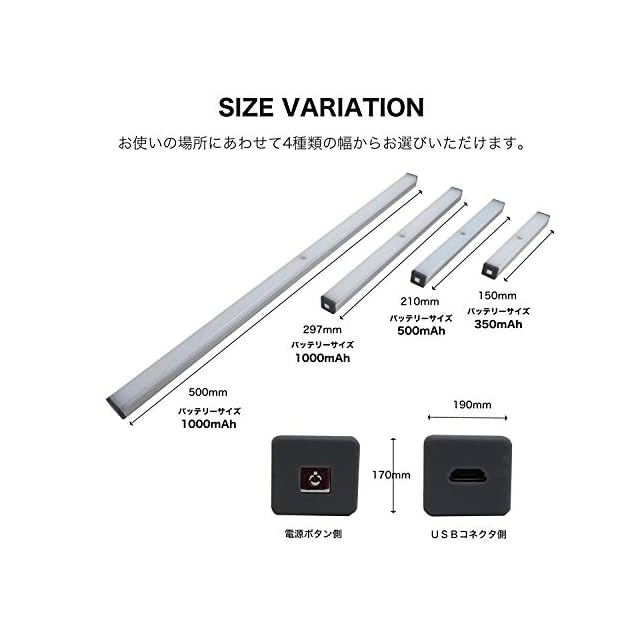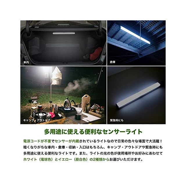 地球家具 ワイヤレス人感センサー ライト LED USB充電式 ワイヤレス 光センサー 自動点灯 自動消灯 リチウムイオン Lithium Polymer Battery バッテリ内蔵 収納 押入 クローゼット 車庫 車内 廊下 トランク アウトドア キャンプ 緊急時 フットライト (50cmタイプ,イエロー(電球色))