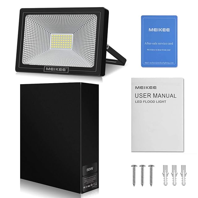 MEIKEE led 【2022改良】投光器 作業灯 看板灯 50W 昼光色 集魚灯 駐車場灯 省エネ 高輝度 豪雨対応 工場 IP66防水 体育館用 倉庫照明 防犯灯 ナイター 船舶 屋外作業 屋内 屋外 設置可能 BBQ用 6500K 5000LM 500w相当 5万時間点灯可能 13年間耐久度 日本語取扱説明書付き PSE認証済み