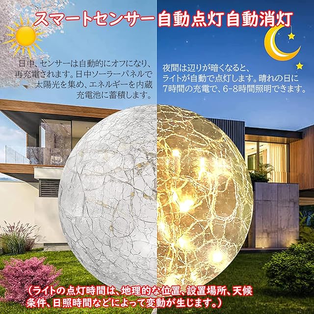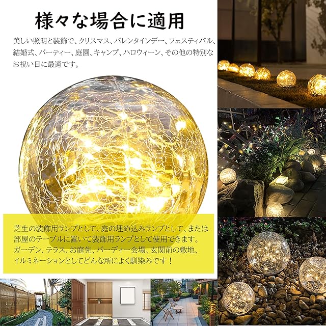 【様々な場合に】芝生の装飾用ランプとして、庭の埋め込みランプとして、または部屋のテーブルに置いて装飾用ランプとして使用できます。ガーデン、テラス、お庭先、パーディー会場、玄関前の敷地、イルミネーションとしてどんな所によく馴染みです!美しい照明と装飾で、クリスマス、バレンタインデー、フェスティバル、結婚式、パーティー、庭園、キャンプ、ハロウィーン、その他の特別なお祝い日に最適です。
