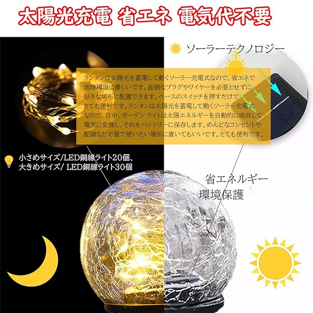 【おしゃれでユニックなデザイン】美しい亀裂、どこか懐かしいレトロなデザインがオシャレなレトロランプ、古き良き時代のヨーロッパを思わせるようなレトロランプ、アンティークな雰囲気を作り出せます。ガラスの亀裂デザインは、破損しにくく、光の効果がより美しいです。 暗闇で映し出される照明効果は非常によく、予期しない視覚効果をもたらします。あなたの想像力を使ってあなたの庭にいくつかの輝きを追加します。