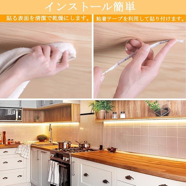 【取り付け簡単】裏面に両面テープが付いているので、工具不要、ライトの裏側に強力な粘着が付属して設置場所に簡単に貼り付けます。保護層を剥がして、きれいな乾燥した平らな面に貼り付けます。(ご注意:貼り付ける前につけさせる場所のホコリなどを拭き取ってから貼り付けてください。)