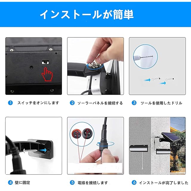 【5500mAh大電池容量・省エネ・電気代ゼロ】内蔵充電池は5500mAh超大容量で、ソーラーパネルは5v3.5wで、十分な日光が当たる場所に8時間でフル充電されたらより、12時間以上点灯ができます。電気代がかからないのでコストパフォーマンスが最高。ソーラーライトは昼の間に太陽光で自動充電し、夜になると自動に点灯します。地震や台風などの災害で万一電源が停止しても、非常灯としても使え、防犯や避難などに貢献します。