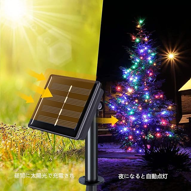 【ソーラー式のイルミネーション 経済的な装飾ライト】 材質:LED+PVC+銅 このイルミネーションは電池不要、コンセント不要、配線が不要、昼間に自動消灯して太陽光で充電され、ソーラーエネを吸収し、夜になると自動点灯します、満充電状態で、最大8時間光り続けます、省エネルギー、環境にも優しいのledイルミネーションライトです。