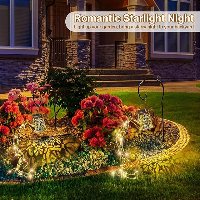ArilAril ソーラーライト ガーデンライト 飾りライト 屋外 埋め込み式 じょうろ型 庭園灯 飾りライト 置物ライト LEDライト ちらつく流れる水の効果 太陽光パネル IP65防水防塵 光センサー 自動点灯消灯 配線不要 取り付け簡単 (ケトルライト)