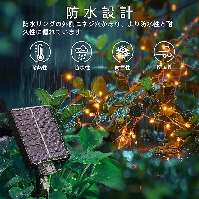 【ソーラー充電式&自動ON/OFF&エコで省エネ】このLEDストリングライトはバッテリー不要、コンセント不要、配線不要、センサータイプです。昼間は自動的に太陽光で充電され、夜間に自動的にオンになります。自然の力から生まれたクリーンなエネルギーで省エネの上に環境に優しいです。