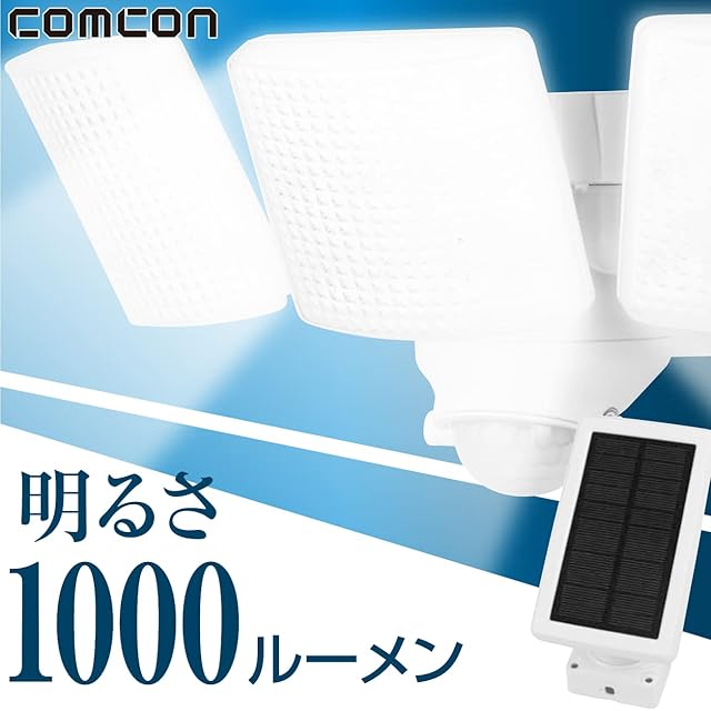 comcon ソーラーセンサーライト CLA-300 3灯式 人感センサーライト 屋外 外 屋内 室内 防犯ライト ガレージ 庭 玄関灯 玄関 国内メーカー 高輝度 エコ 節電 広範囲 投光器 防雨 (CLS-300 LEDソーラーセンサーライト3灯式)