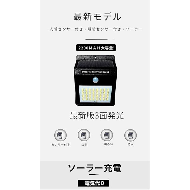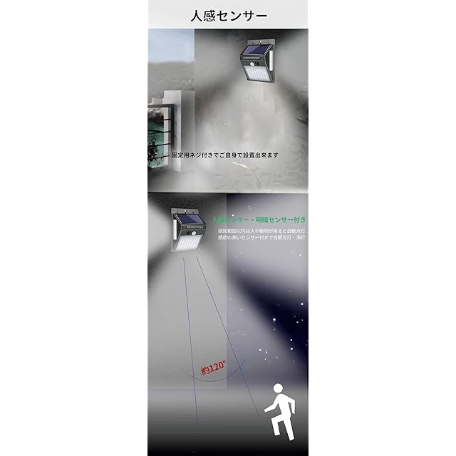 センサー:人感センサー(反応距離3m、点灯時間20秒)