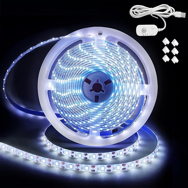 Lasoll LED テープ ライト ストリップライト 昼光色 5m 6000k 高輝度 人感 防水防塵 無段階調光 両面テープ 取付簡単 USB給電式 コードクリップ付き 雰囲気作り 屋内外装飾 祝日用 日本語説明書付き