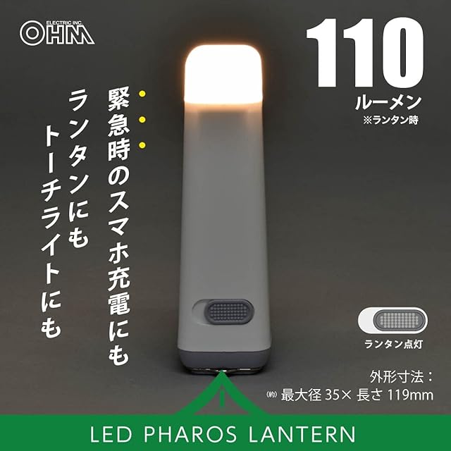 オーム電機 LEDファロスランタン USB充電式 懐中電灯 ハンディライト トーチライト スマホの充電もできる 暖色/白色点灯 110ルーメン 防災 常備灯 つり下げフック付き ホワイト LN-C11A5 08-1520 OHM