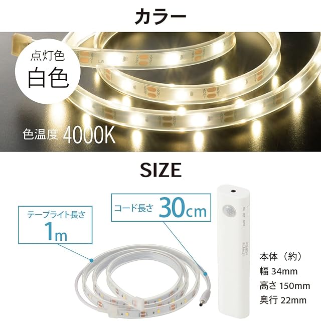 color:白色LED size:テープ長さ1m style:乾電池式/人感センサータイプ: