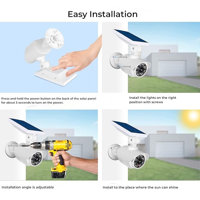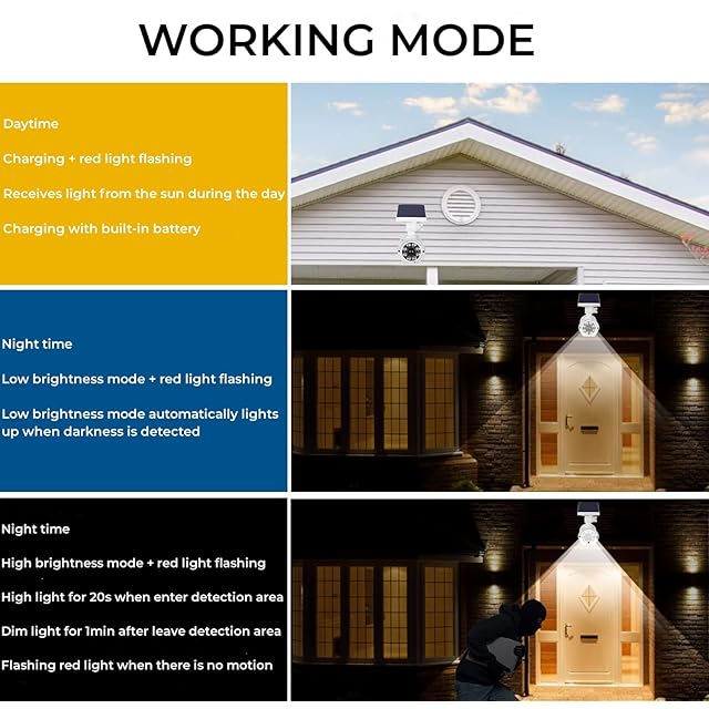 ☀【ダミーカメラソーラーライト】ソーラー防犯ライトは防犯カメラのように見え、赤い点滅ライトもあり、現実感を加えます。家の外に光を提供するだけでなく、家に近づく侵入者を怖がらせることもできます。 防犯カメラの外観だけを持ち、監視機能はありませんのでご注意ください。