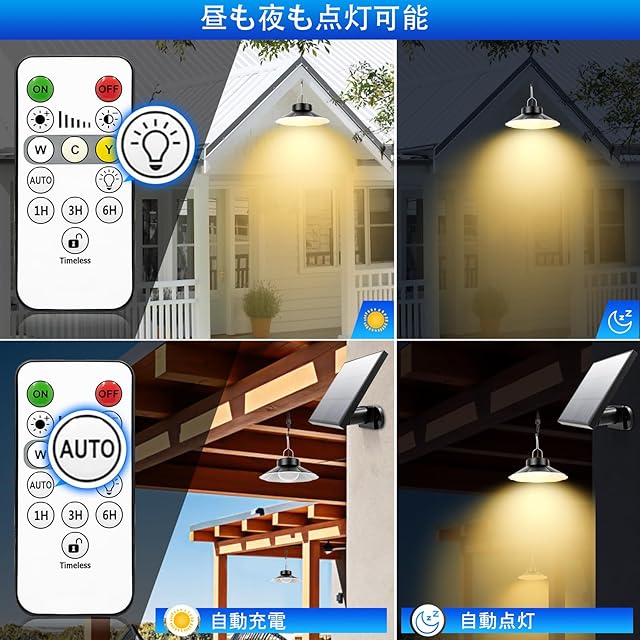 AGOTD LED ソーラーライト 屋外 防水 室内 ペンダントライト 分離型 北欧 5Mケーブル 光センサーライト 自動点灯/消灯 ガーデンライト ソーラー 照明 リモコン付き 電球色/昼白色/昼光色玄関先/庭/駐車場適応 日本語説明書付き(1 個セット)