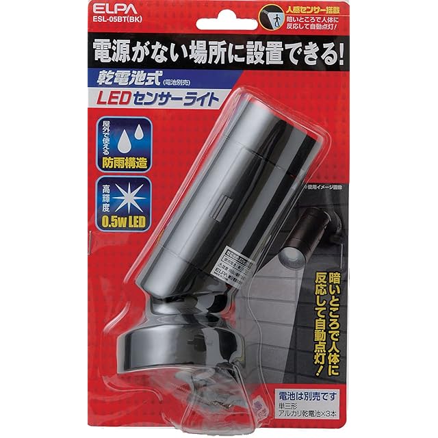 エルパ(ELPA) LEDセンサーライト 防犯 0.5W 耐水性能:IPX4 ブラック 乾電池式 ESL-05BT(BK)