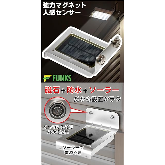 FUNKS ソーラーライト 人感センサー マグネット 屋外 防水 人感 センサーライト 防犯
