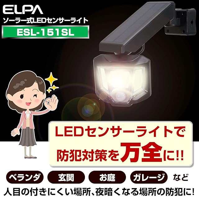 エルパ (ELPA) ソーラー式 センサーライト (LED/防水) 人感センサーライト 屋外 ソーラー (ESL-151SL)