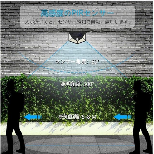 【3つ点灯モード・光&人感センサーライト・自動点灯消灯】<br>3つの点灯モードとは、常時点灯モード、DIMセンサーモード、人感センサーモードとなっています。<br>状況に応じて、異なるモードを設定できます。<br>3つの点灯モードとも昼間と明るい場所では点灯しません。【100LED・4面発光・4個セット】<br> ソーラーセンサーライトは、発光面が4面あり、照射範囲が300°以上に達し、照明の範囲もより広くなります。<br>玄関、庭、廊下、物置、ガレージ、ガーデン、縁側、駐車場などで、防犯や照明に最適です。