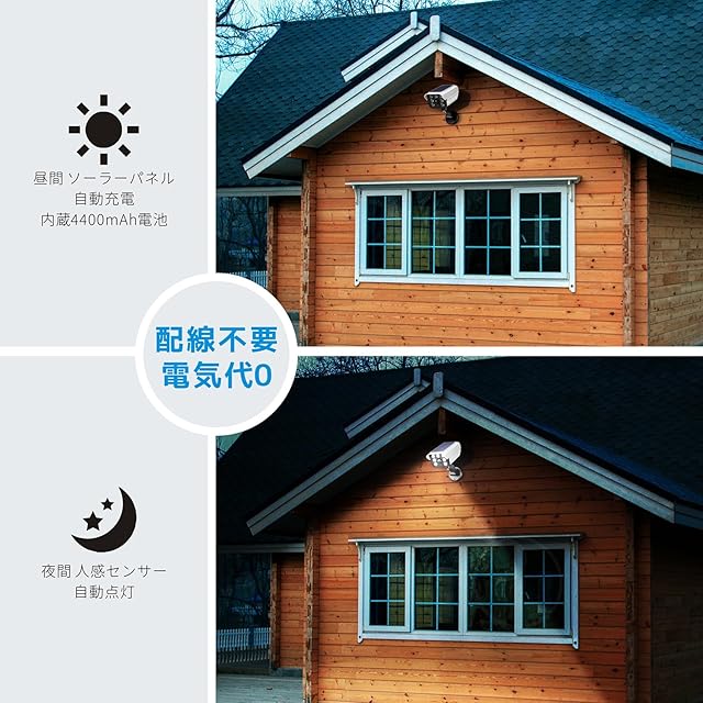 「ソーラーパネル充電 4400mAh大容量」この 防犯照明センサーライト は太陽光充電式なので、パネルを日当たりの良い場所に設置するだけで、昼間は自動充電、夜間は自動点灯します。防犯ライト 人感センサーを屋外ライトとして利用し、太陽光の20%を電気エネルギーに転換できます。電気代は0、省エネで環境に優しいです!4400mAhの電池容量があり、通常は、日当たりが良い場合には5~6時間で満電できます。(♥ご注意:太陽光で蓄電された太陽光ledライト 屋外なので、充電の容量と使用時間は季節・日照時間・天候により異なります。)