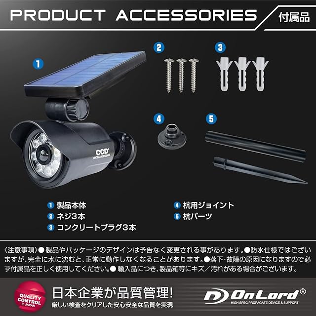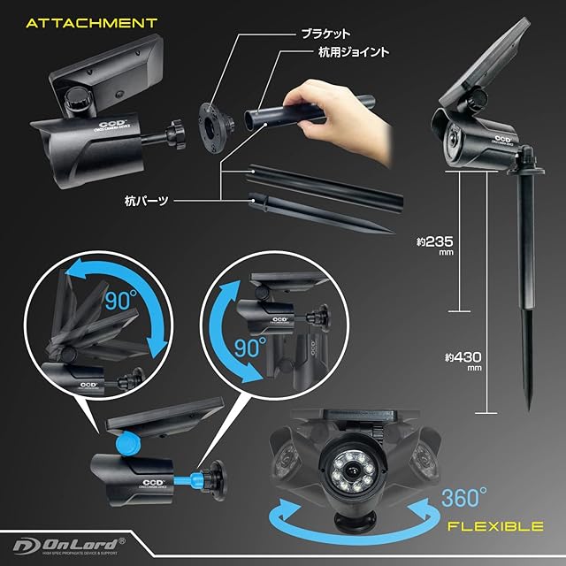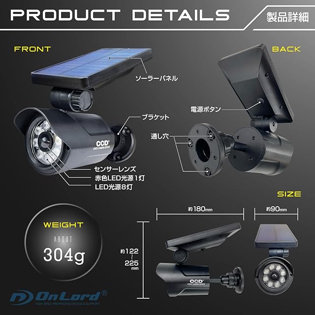 商品名:オンロード(OnLord) センサーライト 防犯カメラ型 ブラック 屋外防水 LED 人感センサー 太陽光発電 OL-332BR