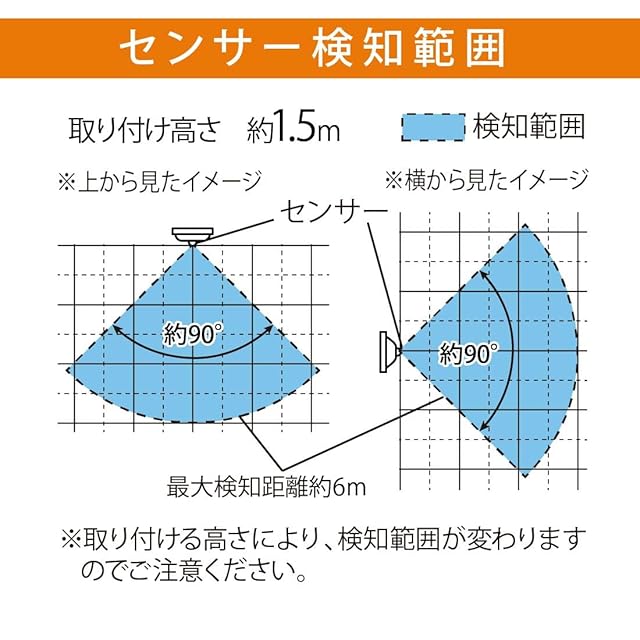 ◆センサー検知範囲:約6m 左右約90° 上下約90° ◆防じん防水性能:IP65(粉じんなどに対して「耐じん形(6)」、水に対して「噴流(5)」への保護がなされていることを示します。 ※JIS C920準拠) ◆使用温度範囲:-10℃~40℃ ◆外形寸法:(約)幅130×高さ90×奥行き40mm