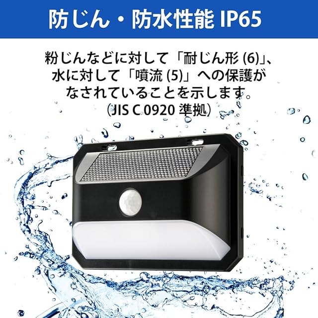 【 特 長 】 ◆昼の間に充電し、夜は照明や防犯に ◆明暗+人感センサーで周囲が暗くなるとほのかに点灯、人が近づくとしっかり点灯 ◆コンセントがない場所に設置できる ◆ソーラー発電 ◆防じん防水性能はIP65 ◆簡単取付