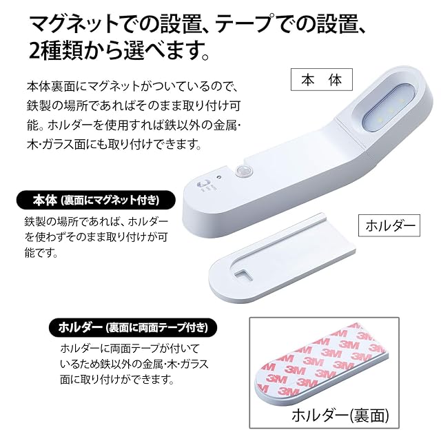 マグネット付きで冷蔵庫などに取り付けられるセンサーライト。