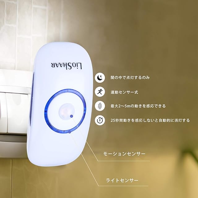 商品名:Lio SHAAR センサーライト LED人感センサーライトLEDナイトライト 眩しくないの光 赤ちゃんライト 光センサー付 自動点灯 自動消灯 電球色 キッチン トイレ 寝室などの場所に適用(一個セット)