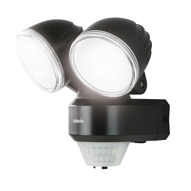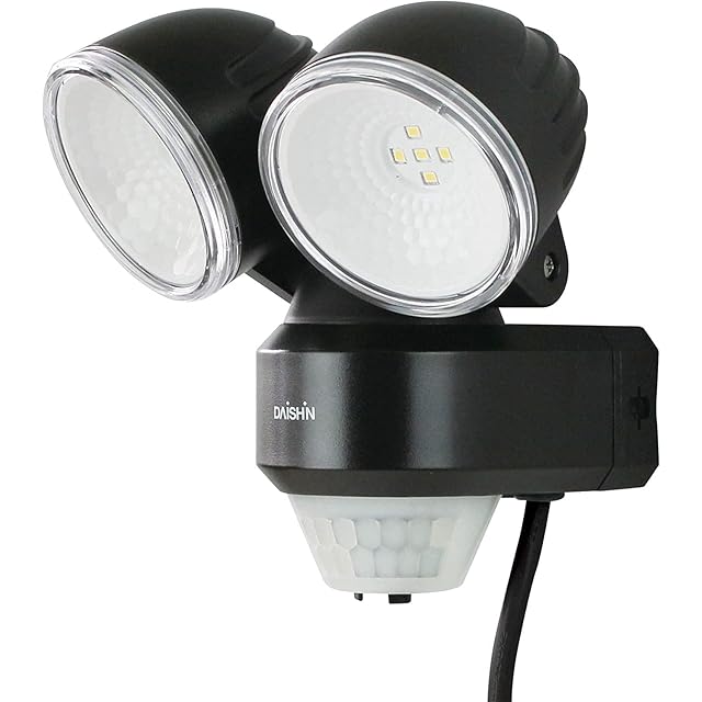 商品名:DAISHIN 大進 センサーライト 2灯式 DLA-N4T200 AC コンセント 100V LED 人感センサーライト 屋外 外 屋内 室内 防犯ライト ガレージ 庭 玄関灯 玄関 高輝度 エコ 節電 広範囲 投光器 防雨