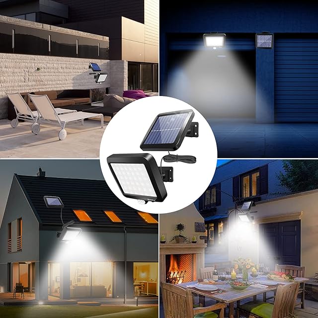 ソーラーライト 屋外 56LED センサー モーションディテクタ 超高輝度 照明 防犯 IP65防水 ウォールライト 太陽光発電 人感センサー自動点灯 ガーデン 5Mケーブル /駐車場/玄関/廊下/軒先/庭先