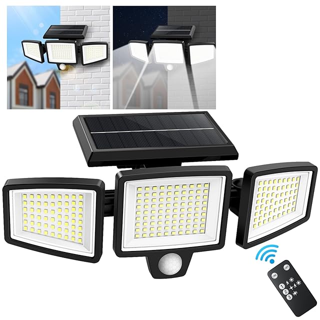 ソーラーライト 屋外 防水 センサーライト 屋外 ソーラー 人感センサーライト 屋外 LED投光器 太陽光充電 電気代不要 光&人感センサー 自動点灯消灯 【超高輝度LED搭載/3面発光/360°角度自由調整/防水防雨】 壁掛け式 防犯ライト ガーデンライト 屋外/軒/庭/ガーデン/玄関/駐車場/車道/ガレージ 防犯対策 停電・災害時に適用